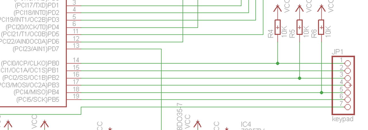 3x4-es keypad-ot szeretnék kezelni. Milyen logika szerint kell? A bekötése: Ezeken van felhúzóellenállás: COL1 PB2 COL2 PB0 COL3 PB4 Ezeken nincs felhúzó: ROW1 PB1 ROW2 PB6 ROW3 PB5 ROW4 PB7