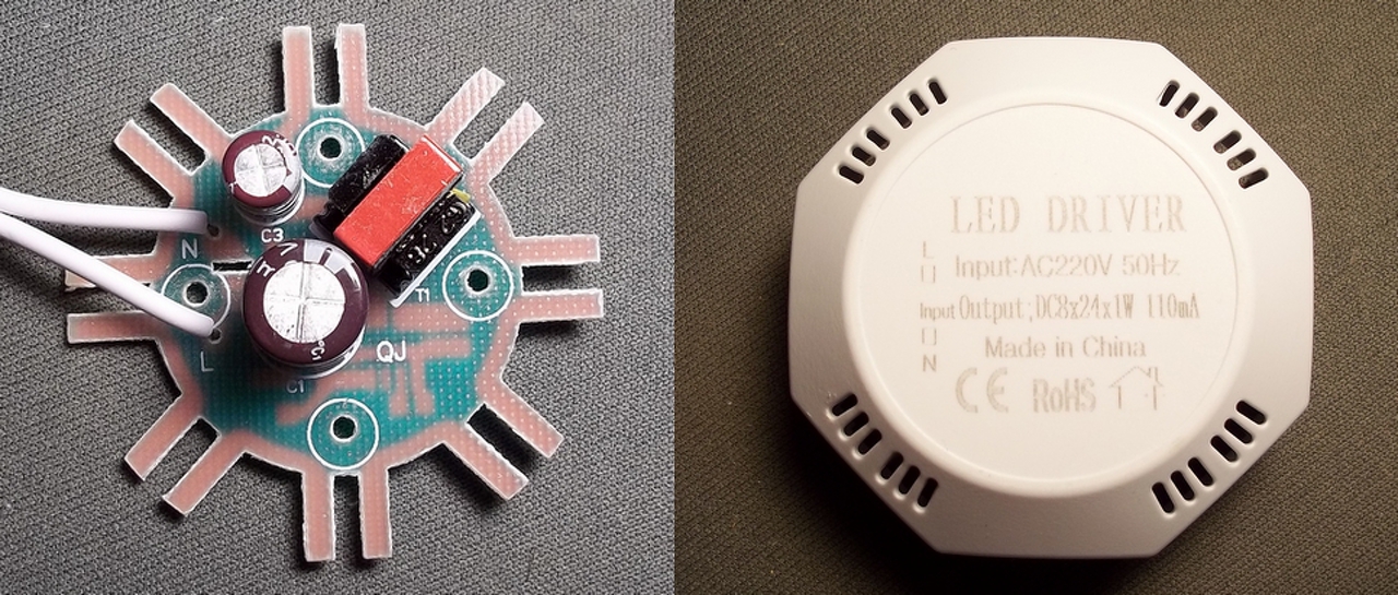 Hogy ne csak a Transzi blogja pörögjön. Egy egyszerű step down megoldás a kínaiaktól 20W-nyi LED-hez. A késztermék annyiban különbözik csak az adatlapi elrendezéstől, hogy C2-re és C3-ra is tettek még egy kisütő ellenállást. Ezzel is csak annyi a baj hogy nincs leválasztva, így nem tanácsos tapogatni.