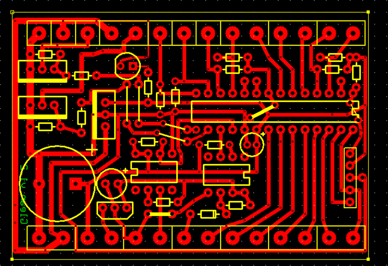A forrasztási (SMD alkatrészek) oldalon megy néhány földvezeték. Ezeket amennyire lehet, meg kellene szélesíteni, és minél több furattal összekötni a felső telifölddel.