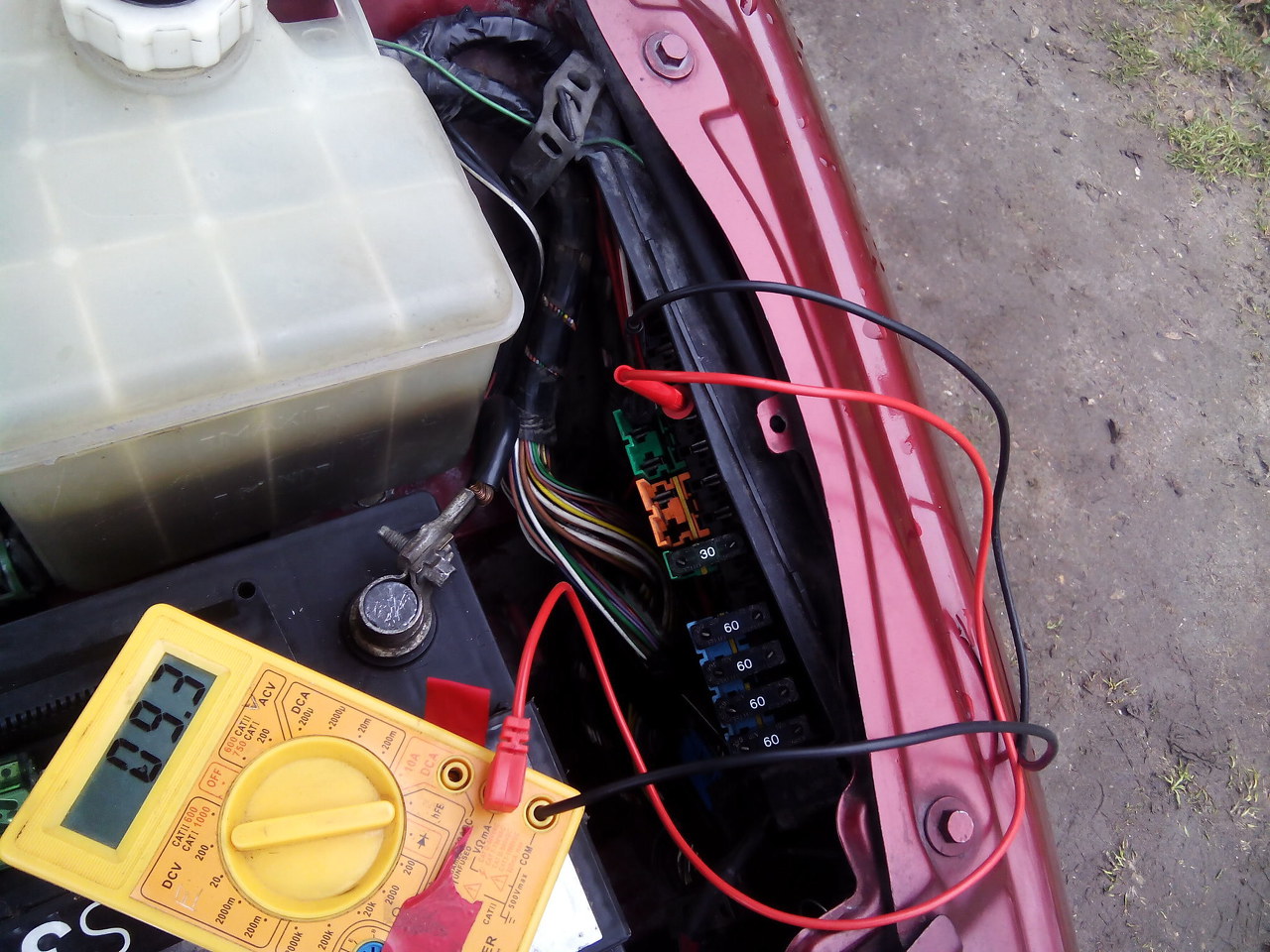 Egy biztosítékon nem így kell feszültséget mérni, mert így a fogyasztókat is beleméred és ez így nem tükrözi a valóságot. A műszer negatív csúcsát e stabil test pontra tedd (az akku negatív sarka a legjobb) és a biztinak csak a pozitív felét mérd. Mindjárt akku feszültség közeli értékeket fogsz szerintem mérni. Egyébként merre vagy?
