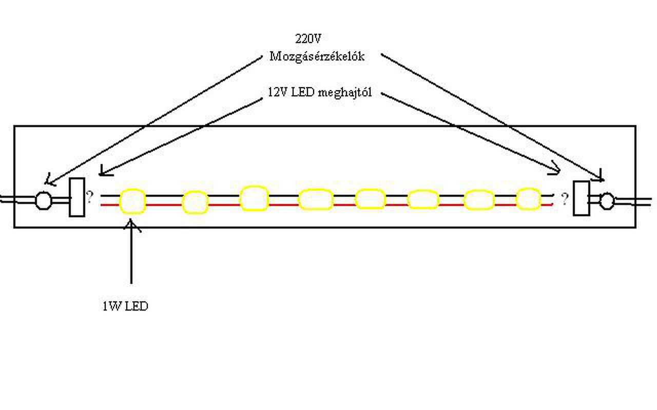 Adott egy kb. 30 méteres folyosó. Az tervezem, hogy a két végére kerülne egy-egy 220V-ról működő mozgásérzékelő, ezek kapcsolnának be egy-egy 12v-os LED meghajtó trafót. A folyosó hosszában kb. 8 db 12V 1W-os LED kerülne. A LED-ket mindkét trafóra kötném, hogy bármely irányból épnek a folyosóra azok bekapcsolódjanak.