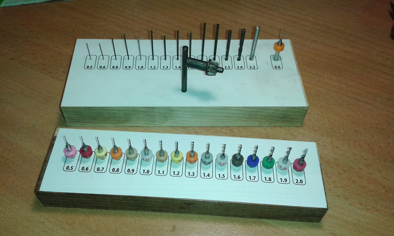 Ez praktikus, szépen van elkészítve. Nekem is hasonló volt, a fúrók lukjának a kezdetnél csináltam besüllyesztést, hogy könnyebben beletaláljak a fúrót ha visszateszem, az bevezeti a lukba. Ehhez egy fúró élszöget átköszörültem.