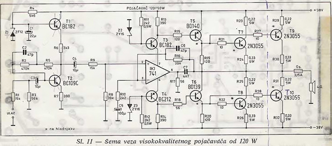 A Profiktól kérnék egy kis segítséget! Az alábbi kapcsolás működne-e KUY12 tranzisztorokkal (80V, 10A, 70W)? +- 30V-ról 8Ohm-os terhelésre kellene 30-40W. Úgy gondoltam hogy elhagynám a bemeneti fokozatot, a jelet az IC előtti 10µF-os kondi kapná és csak 1pár végtranzisztort használnék. Ja, és Zobel szűrőt tennék a kimenetre. Előre is köszönöm! A hozzászólás módosítva: Feb 29, 2016