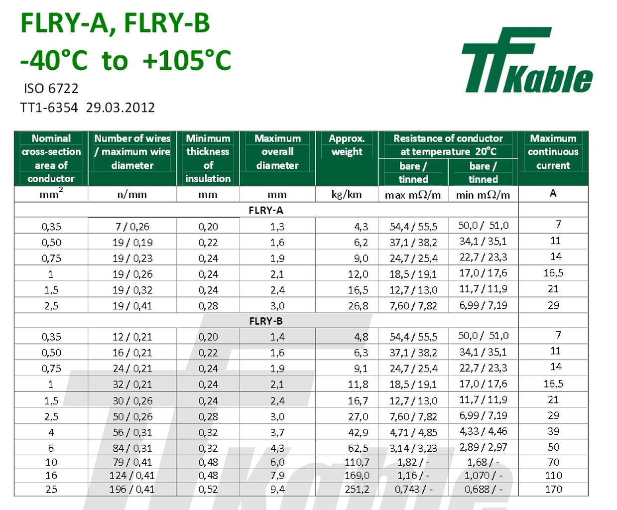 Az autóiparban (FL..) használatos csökkentett falvastagságú (..R.) vezetékek átmérőit és terhelhetőségét megtalálod a csatolt táblázatokban. Üdv.