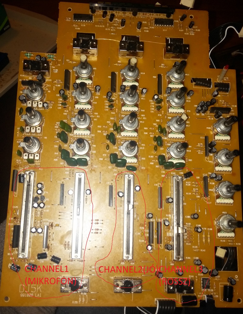 Egyik ismerősöm hozott egy keverőt javítani. Azt mondta, hogy nem jó a channel 3 ha bedugja a "line"-ba, a phono működik csak torz! Belenéztem és sajnos azt láttam, hogy valaki már belenyúlt... Maga a keverő nyákjáról át van kötve egy vezeték a ki/be meneti nyáklapra. Ezen kívül még a csatornák alatti kapcsolók lába között át van vágva a vezető sáv. Ez nem hiszem, hogy befolyásolja mivel ezzel csak a kivezérlés jelzőt lehet ki/be kapcsolni!(Tudtommal) Egyenlőre más átalakítást nem láttam. Nem merem vissza alakítani nehogy baja legyen, vagy ettől nem lehet? Valami ötletetek van? Előre is köszönöm! A hozzászólás módosítva: Márc 2, 2016