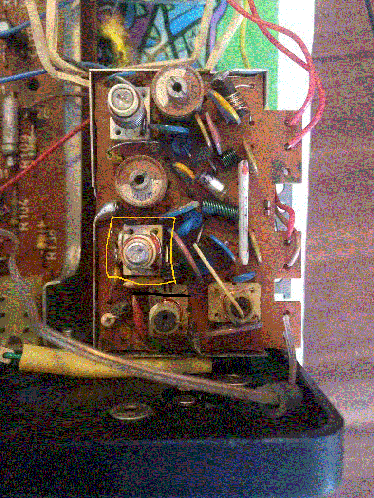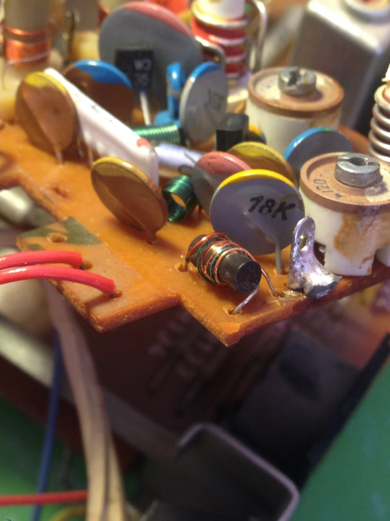 És a főpanel hátulján van egy narancssárga tranzisztor meg egy BF 198T tranzisztor is amit nem én tettem bele, de nagyon házi munkának látom benne.