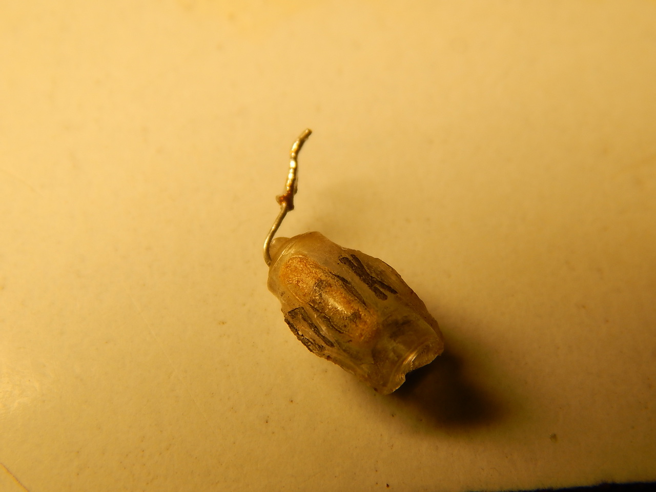 Ugyanott egy narancssárga kör alakú kondi is el van törve, annak sajnos nem tudom az értékét.