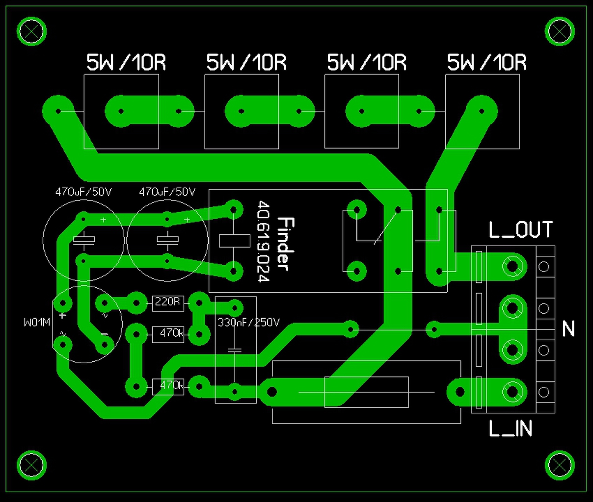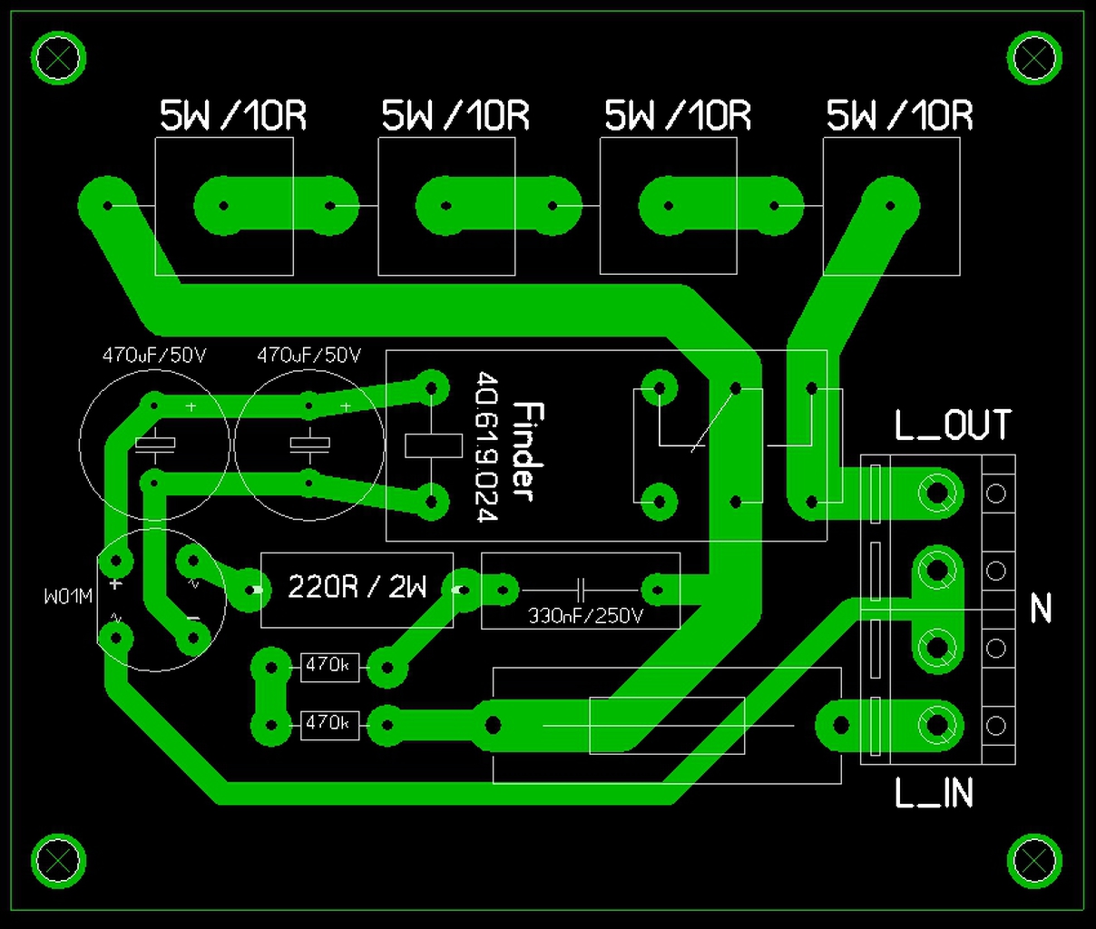 Hello! Ha kívül vezeted a sávot, nem kell átkötés. A 220ohm-nak nagyobb helyet hagytam volna. Oda egy 2W-os ellenállás dukál, mert annak igénybevétele a legnagyobb bekapcsoláskor, nem beszélve egy tranziens lökés alkalmával.