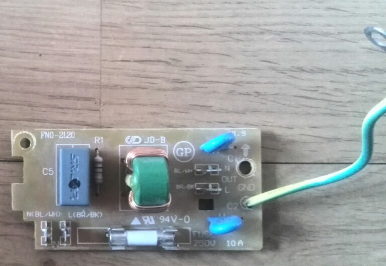 Maga a panel a tekerccsel és a kondival egy hálózati zavarszűrő.