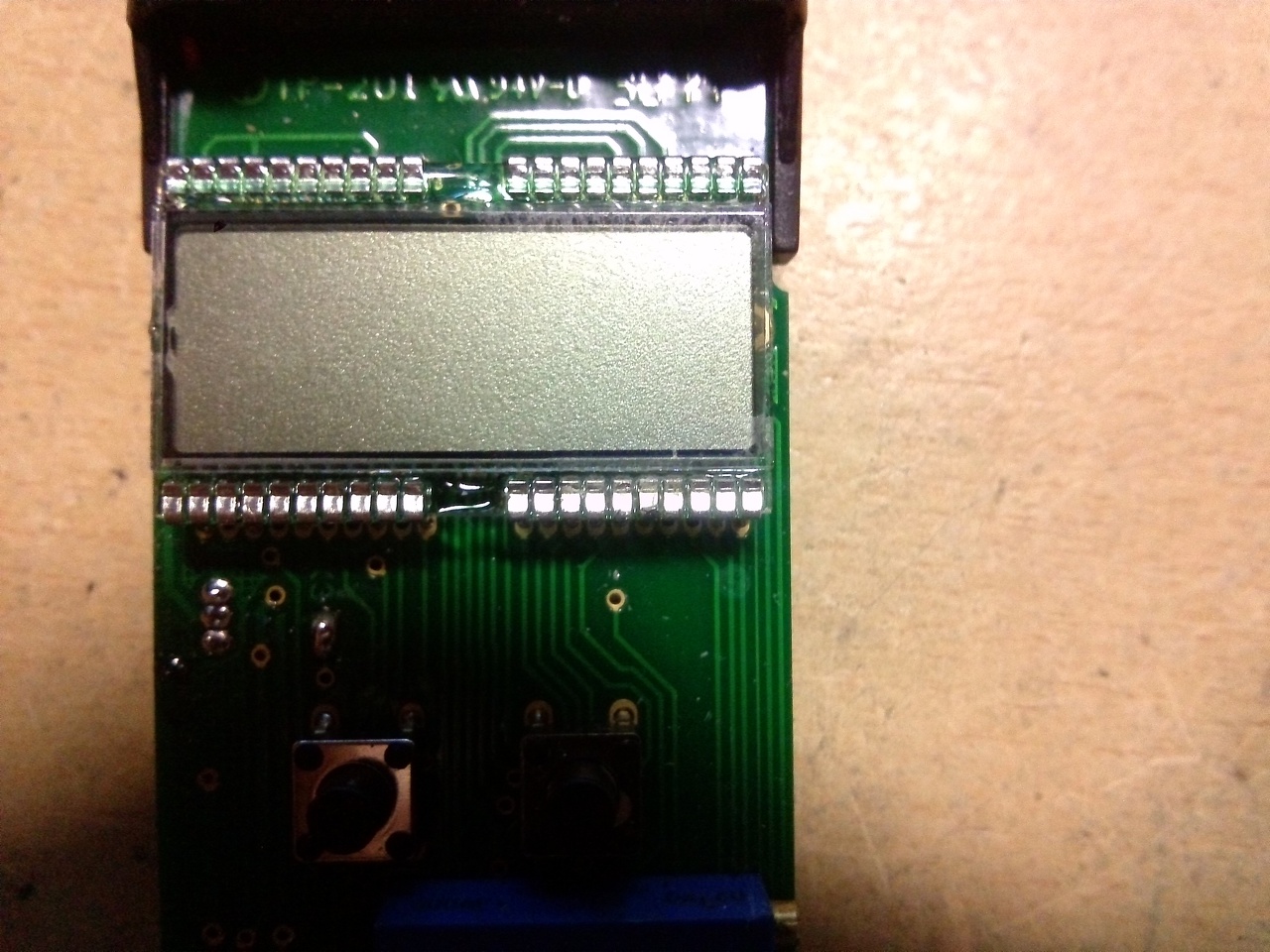 Egy földbe dugható vezetőképesség mérő LCD-jét szeretném megjavítani. Sajnos belefolyt egy kis növény tápoldat a kijelző mellett és kikezdett néhány az üvegre gőzölt (vagy nyomtatott) vezetősávot a lábak mellett. Ezért néhány szegmens kiesett. Valószínűleg nagyon elvékonyodhattak mert kicsit rálehelve még visszajönnek a hiányzó szegmensek. Meg lehet ezeket javítani vezetőképes festékkel, vagy bármi egyéb módon? Próbált már valaki ilyet? Ez igazából egy 3-1/2 digites 7 szegmenses kijelző, de egyedi gyártású néhány spéci szimbólummal kiegészítve úgyhogy nem tudok ilyet szerezni. Az érintett vezetősávok a jobb alsó sarokban jobbról a 3-8 láb.