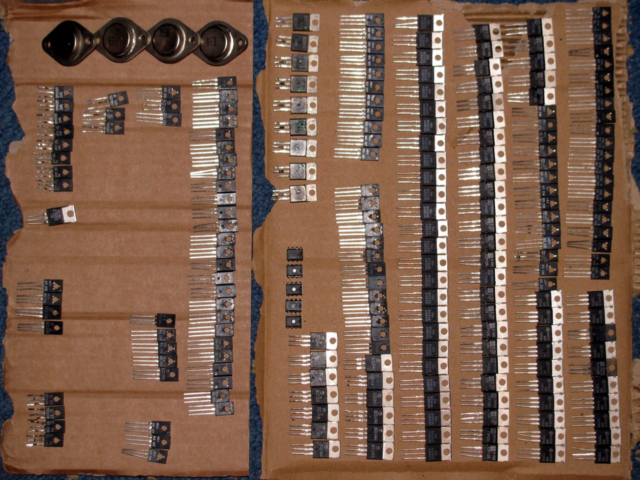 Üdv. Találtam egy kupac többnyire új tranzisztort, gondoltam megkérdem mi az aminek van gyakorlati haszna és lehet vele valamit kezdeni. Mi az amit nyugodtan kidobhatok mert sose fog kelleni. Itt a lista: BD136 47db, TIP126 10db, TIP121 10db, TIP120 30db, BD236 19db, BD648 26db, BD137 13db, BD138 18db, BD242 6db, BD240 7db, 555IC 5db, KT853B 8db, KT853A 1db, SD338 4db, SD348 8db, SD337 3db, BD235 3db, IT7312 4db.