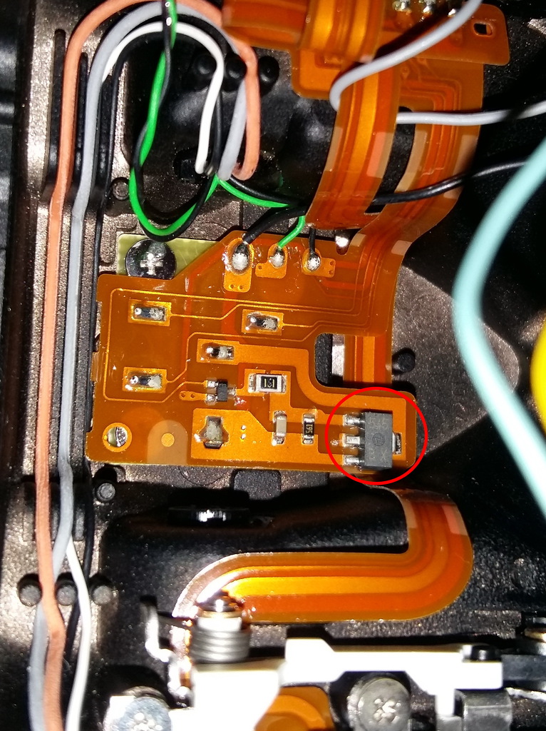 A képen pirossal bekarikázott részen lévő alkatrész mi lehet pontosan? A funkciójából kiindulva én egy tirisztorra tippelnék, de semmi féle infót nem találok róla ("545 BX" felirat található rajta). Amúgy ez egy Nikon fényképezőgép vakupapucsának áramköre. |