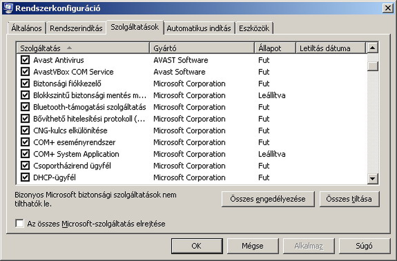 Az msconfig-ban nézd meg, hogy fut-e a szolgáltatás.