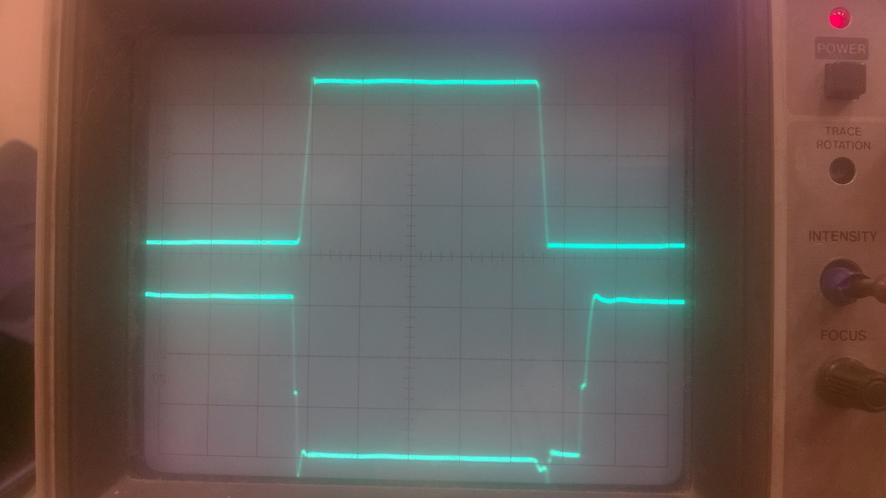 Szekunder oldalon dióda, kondenzátor és visszacsatolás nélkül, csupán IRF740 kapcsoló elemekkel terhelve a gate meghajtást a felső fet melegszik- langyos, illetve ennek a FET-nek a GATE-jén a fel és le futó él ms késleltetésű.
