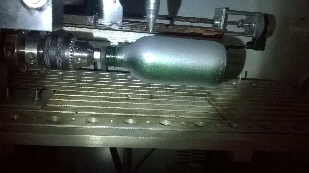 Próbaképp összeraktam egy egyszerű forgatót. Működött szépen, de módosítottam rajta itt ott. Sajnos még tokmányt nem tudtam szerezni, így a képeken látható módon rögzítettem a munkadarabot.