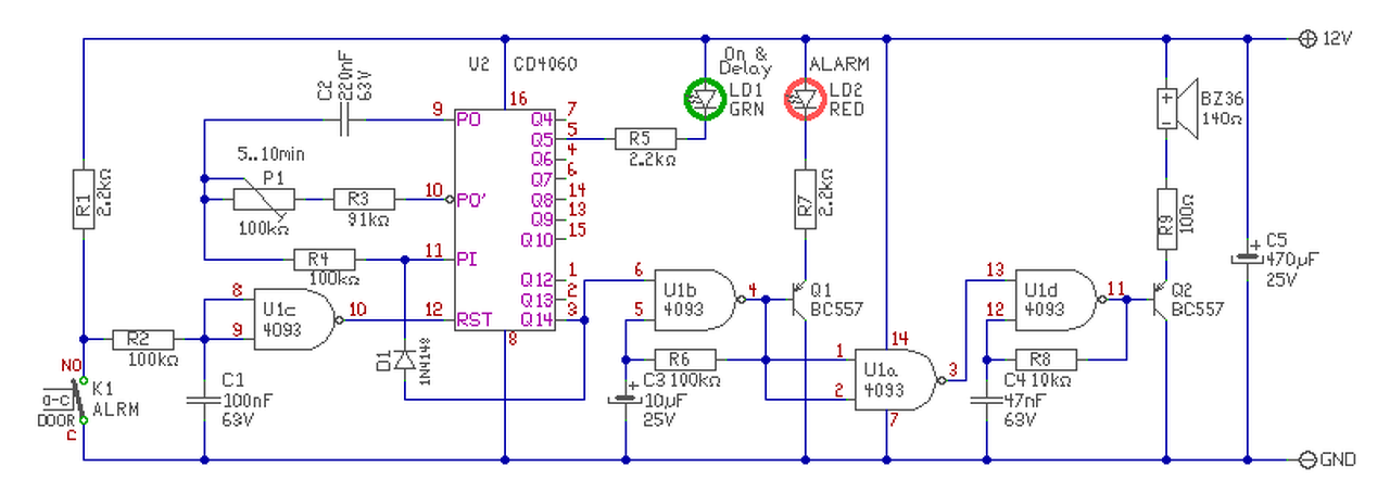 Erre gondoltam, sőt még jobban tudtad, hogy mit akarok. Ez a 2 LED-es jelzés és a késleltetés ideje alatt zárjuk vissza, akkor nem is lesz jelzés, hab a tortára. Jó volt az elgondolásod a hangkeltővel is kapcsolatban, egyszerű passzívra gondoltam, csak azért linkeltem egyet, hogy olyasmire gondoltam. Van néhány bontott darab PC alaplapról, nem kell nagy hangerő, csak figyelem felkeltő legyen.