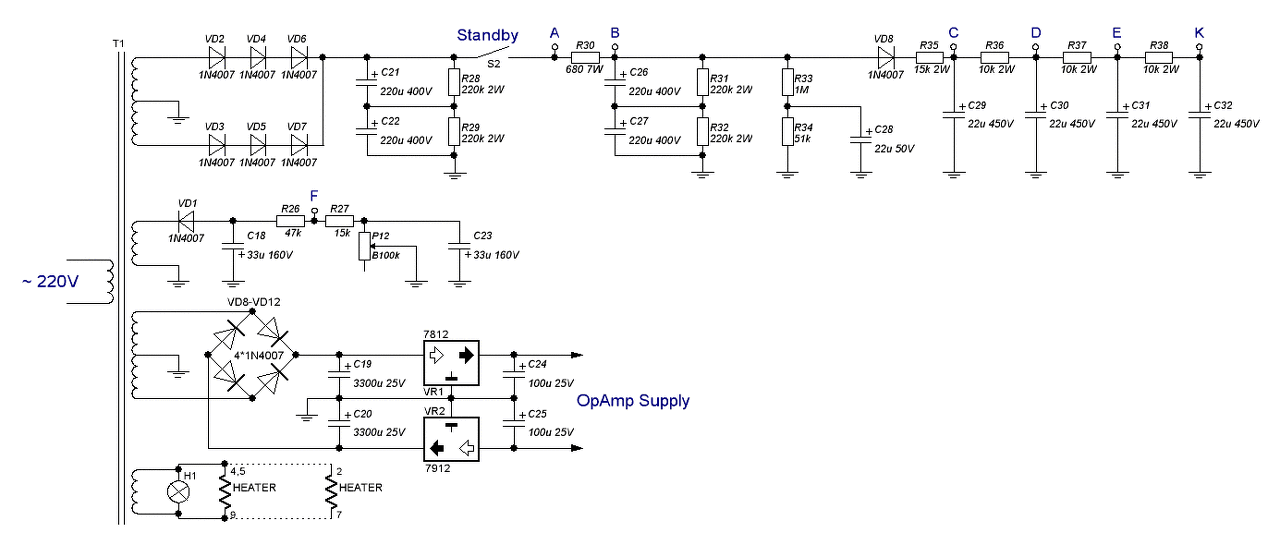 nincs itthon (egyelőre) semelyik sem.terheletlenül 24,7V van a trafószekunder kapcsán mérve.Később lerajzolom akkor hogy hol tartok.aztán megrendelem a szükséges alkatrészeket.
