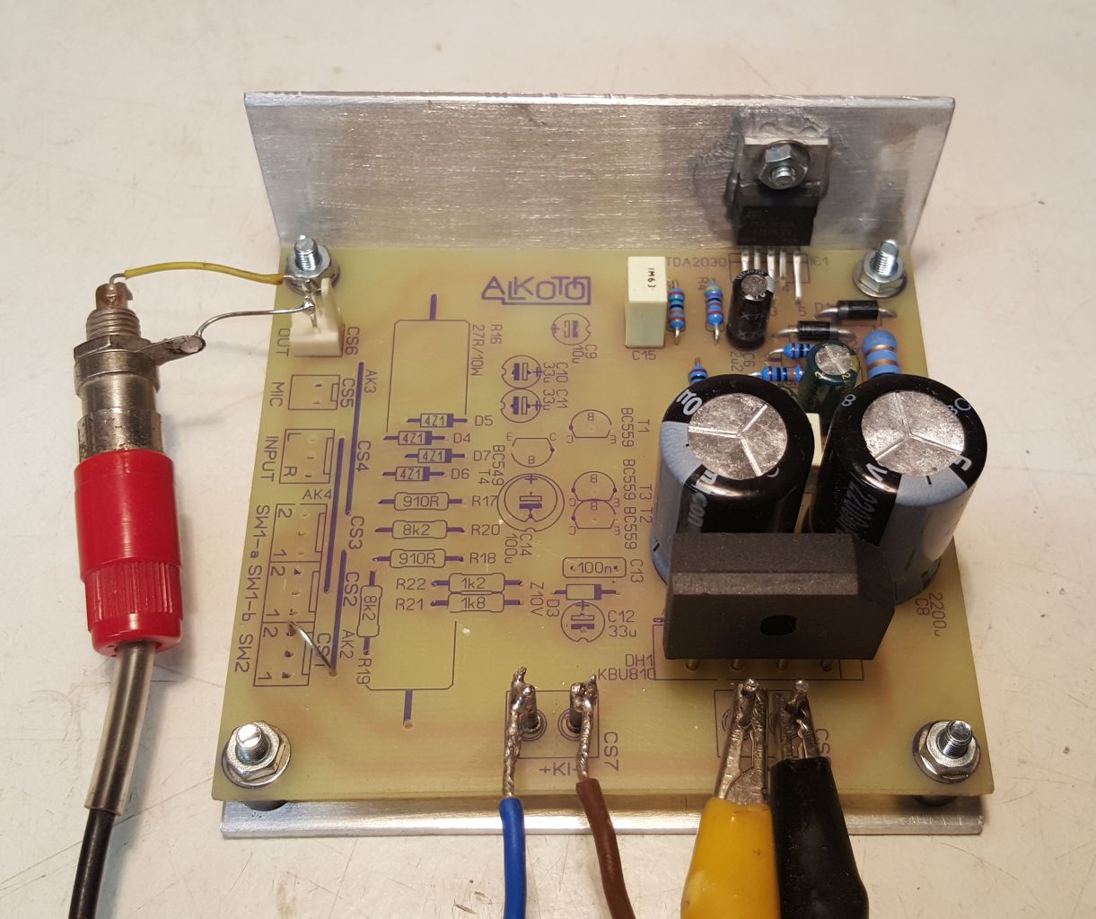 Az talán nem látszik a fényképről, de ez egy olyan változat, aminek szimpla tápfeszültség kell, ezért kicsatoló kondi van a kimenetén.