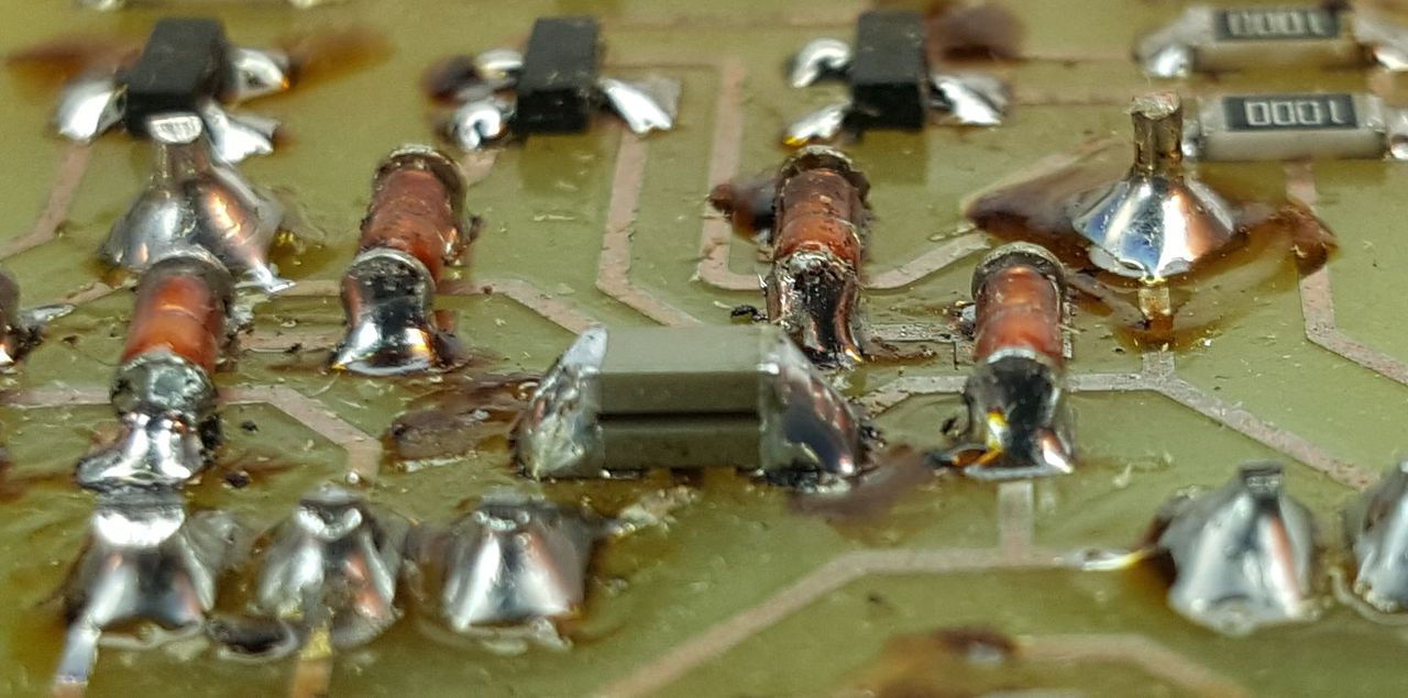 Letisztogattam a házilag készült panelt. A házilagosság nem a rajzolat minőségét jelenti, hanem a panel gyári védőlakkozásának hiányát. Ezen is volt egy a forrasztást segítő lakkréteg, de az a gyantatisztogatáskor eltűnt (előre tervezetten). A rézrétegen van egy nagyon-nagyon lehelet vékony vegyi ón, de ez tényleg olyan jelképes, hogy a későbbi oxidációtól nem fog védeni. Konkrétan átlátszik a rézréteg rajta. Kérdésem, lehetséges-e így, szerelt állapotban lakkozni a rézoldalt. Ez furatlábas alkatrészeket használva nálam szokásos volt eddig is, AKRILAN lakkot használva. Ez jól szigetel, és forrasztható is ha kell. De SMD esetén, a lakkréteg belepne minden, nem csak a rezet és a forrasztást, hanem az alkatrészt is. Van ezzel baj? Szabad ilyet tenni? Vagy létezik más megoldás a panel védelmére?