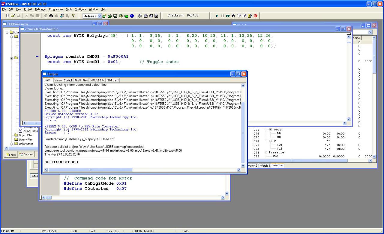 Köszi a választ! Az MPLAB X mcc18 alap beállításaival volt gond. Azt is meg tudtam csinálni, hogy K50-re MPLAB-al és X el, de C18 alatt fordítottam, még sem lett egyforma a hex és nem is működött az X alatt fordított firmware. A beállításoknál az mcc18 alatt resetáltam, majd újra beállítottam a header eléréseket. Változást csak a Generated Command Line alatt láttam, de a program futni kezdett. Még nem tudom pontosan az okot, mert nincs időm keresgélni. Valószínű, hogy az XC8 alatt is csak ezt kellene megtenni, de most már átforrasztottam a PIC-et. (A K22-őt nem kezeli a C18...) Köszi mégegyszer!