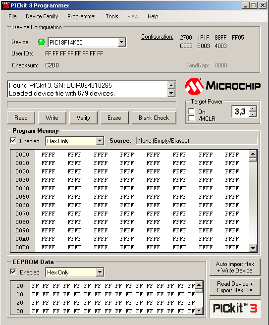 Mivel ez a PICkit 3 v3 program már archív státuszban, ezért nem ismer mindent. Attól, hogy a programozó kínai, még mennie kellene. Főleg, hogy ezzel a programmal megy. Nekem is volt bajom, a korábbi MPLAB X IPE-vel, de úgy látszik most jó lett. MCLR tiltott 16F819-et egyszer programozta, többször nem. PICkit 3 v3-al jó volt. Pedig nekem eredeti PK3 programozóm van.