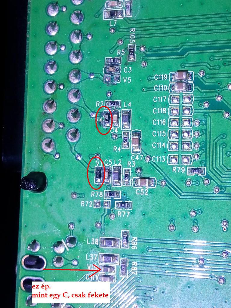 Hali. Egy TV scart lapján elégett pár V alaktrész.
