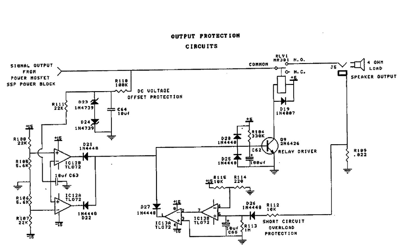 Nem életszerű az egész "túláram" téma, ha ez eleve egybe van építve a hangszóróval. Ekkor csak a hangszrórót kell védeni DC ellen, ha tönkre megy valamiért az erősítő. Ha nincs állandó drótozás mert fix a hangszóró rákötés, akkor nulla esélye van a kimenet rövidrezárásának, vagy ismeretlen hangszóróval való túlterhelésének.