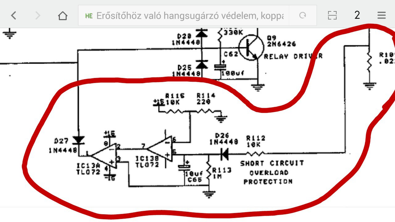 Elsőre indult, tökéletesen működik. Ha kikapcsolom kb. 111V-nál old a relé. +-66V tápfeszültség mellett. Z2 értéke 105.6V. Egyenfeszültségnél azonnal lekapcsolja a kimenetről a hangszórót, majd 2-2,5mp múlva vissza. Ajánlom az után építését, kifogástalan kapcsolás!