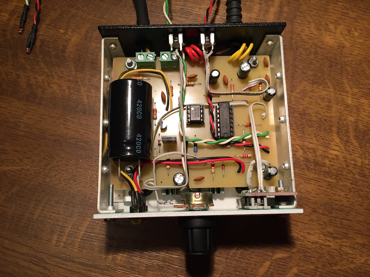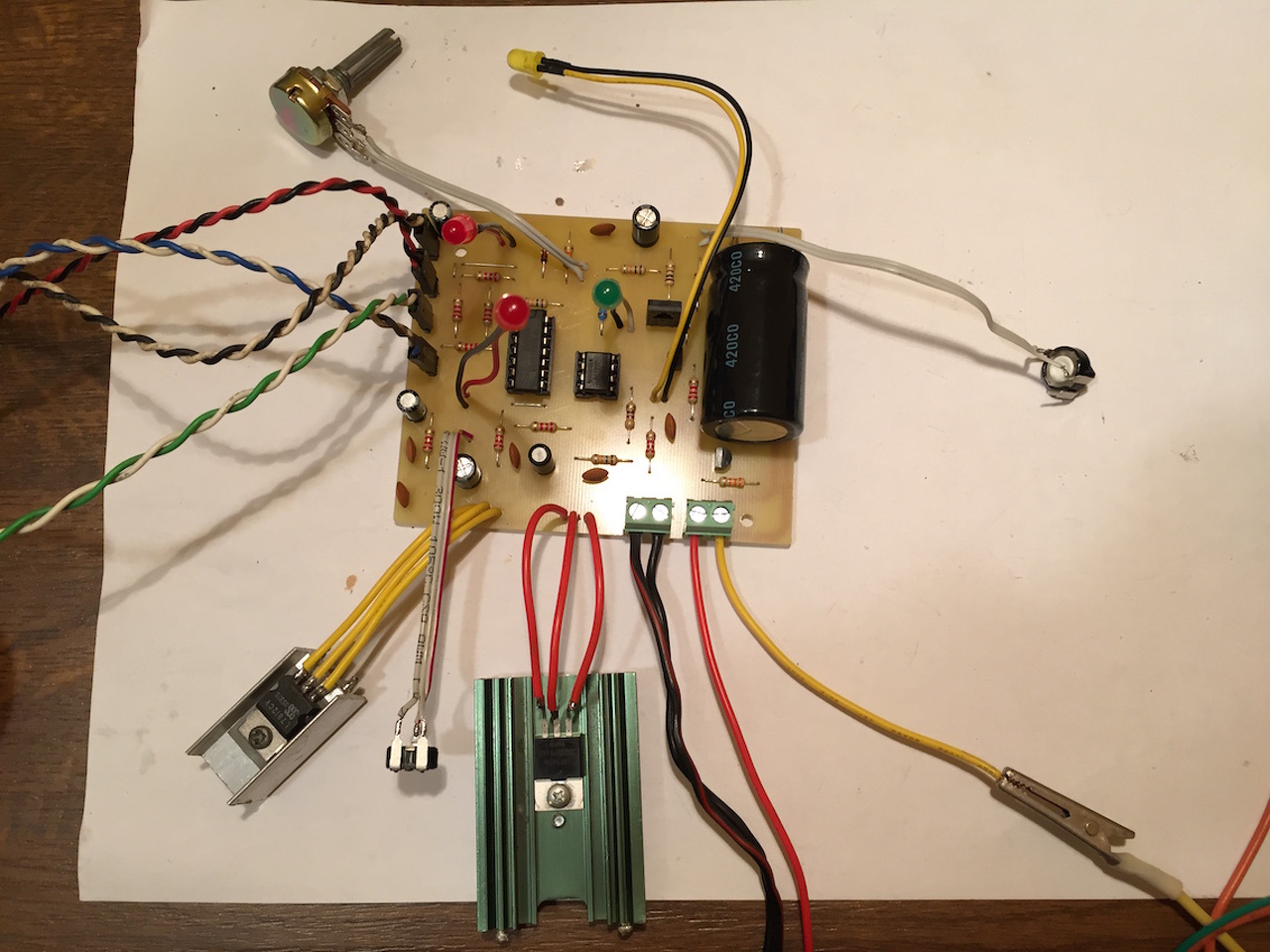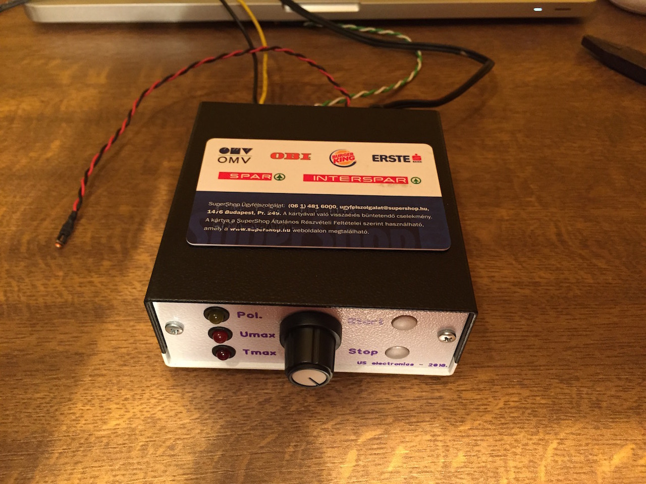 Régóta követem a fórumot, de csak mint megfigyelő. Most megépítettem köbzoli és proli007 Szulfátoldó-töltő automatikával nevű szerkezetét, gondoltam közzéteszem a művet. Volt valami kis régi dobozom, így ahhoz terveztem a NYÁK-ot. A doboz aljában egy kis bordára szereltem a FET-et, a 7812 pedig csak a doboz aljára lett csavarozva, bőven elég neki annyi hűtés. A borda fölé került távtartókkal a NYÁK, az előlapra pedig egy EPSON nyomtatóból bontott nyomógombokat használtam fel a töltés indításához/megállításához. Az előlap elrendezése sajnos részben adott volt a korábbi furatok miatt, így esett végül erre az elrendezésre a választás.