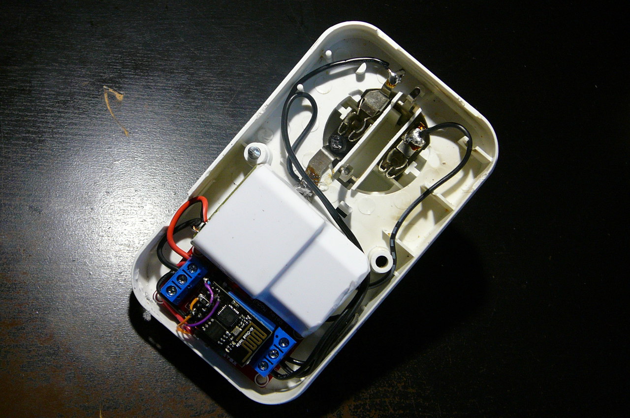 Egy régi mechanikus időzítő kapcsoló házába került, az összköltsége 1500 Ft alatt van. Dugasztáp 5V 400 Ft 3,3 v DC-DC átalakító 150 Ft Relé panel 360 Ft ESP 01 540 Ft