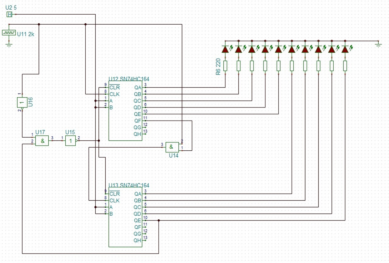Sziasztok! Egyszerű számlálót szeretnék 74HC164-el készíteni. 10db ledet szeretnék egymás után bekapcsolni úgy, hogy az előzőek égve maradnak, tehát a 10. felfutó élre már világít az összes led.