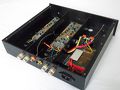 Sziasztok, nemrég vettem a vaterán fillérekért egy elő-végfok párost. A végfok miatt vettem meg mert ígéretesnek tűnt, és tényleg, egy Meridian 103, 70'-es évekbeli high-end végfok szocreál utánépítése lapult a dobozban. Vettem egy jobb dobozt, kicseréltem az összes szovjet és ősmagyar ellenállást és kondenzátort maira és szépen összeépítettem. A trafó elég kicsi 35VA-es, de most csak ez van, majd lesz bele jobb egyszer. Nagyon kifinomult, angolos hangja van, szép énekhang és meglepően erőteljes, gyors basszus. A kapcsolást Boothroyd és Stuart urak tervezték 1977-ben.