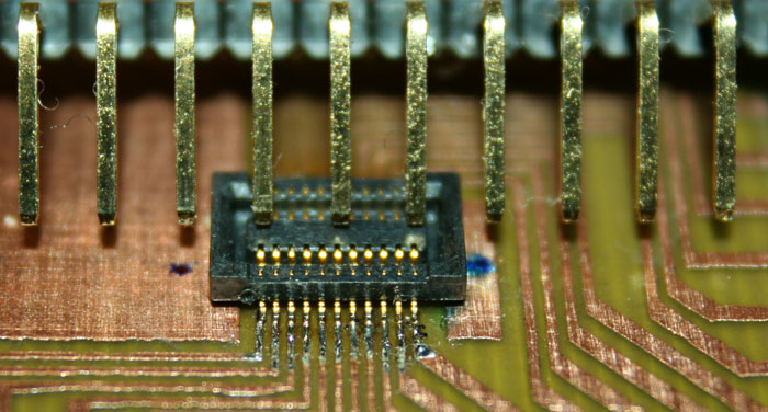 Nyomtatós panelen, amin nem gyári az ónozás, nem igazán fut az ón a lábak fel