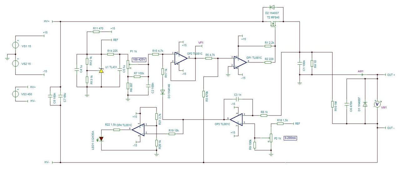 A 200-450V os dcdc konverter lenne előszabályzó a 100-430V 0-200mA áteresztő szabályzóhoz. Ekkora feszültségű áteresztő szabályzóhoz keresek ötletet/kapcsolást.