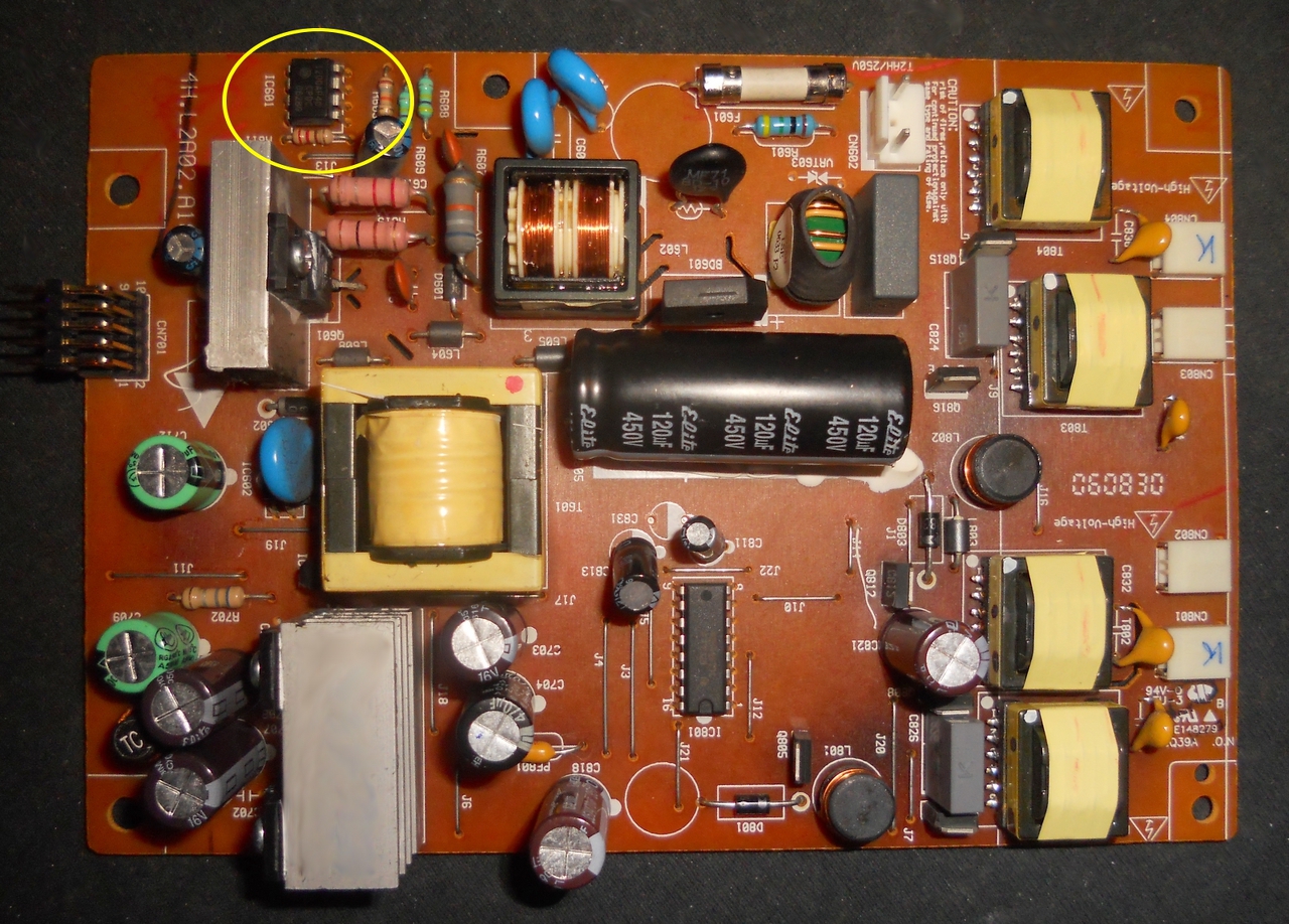A primer puffer teljesen szakadt. Amúgy esélyes, hogy az álandó "áramszünet" miatt a scaler is hibás lett. Amíg nem ellenőrzöd ne is próbálgasd mert szét fog durranni a táp fetestül mindenestül.