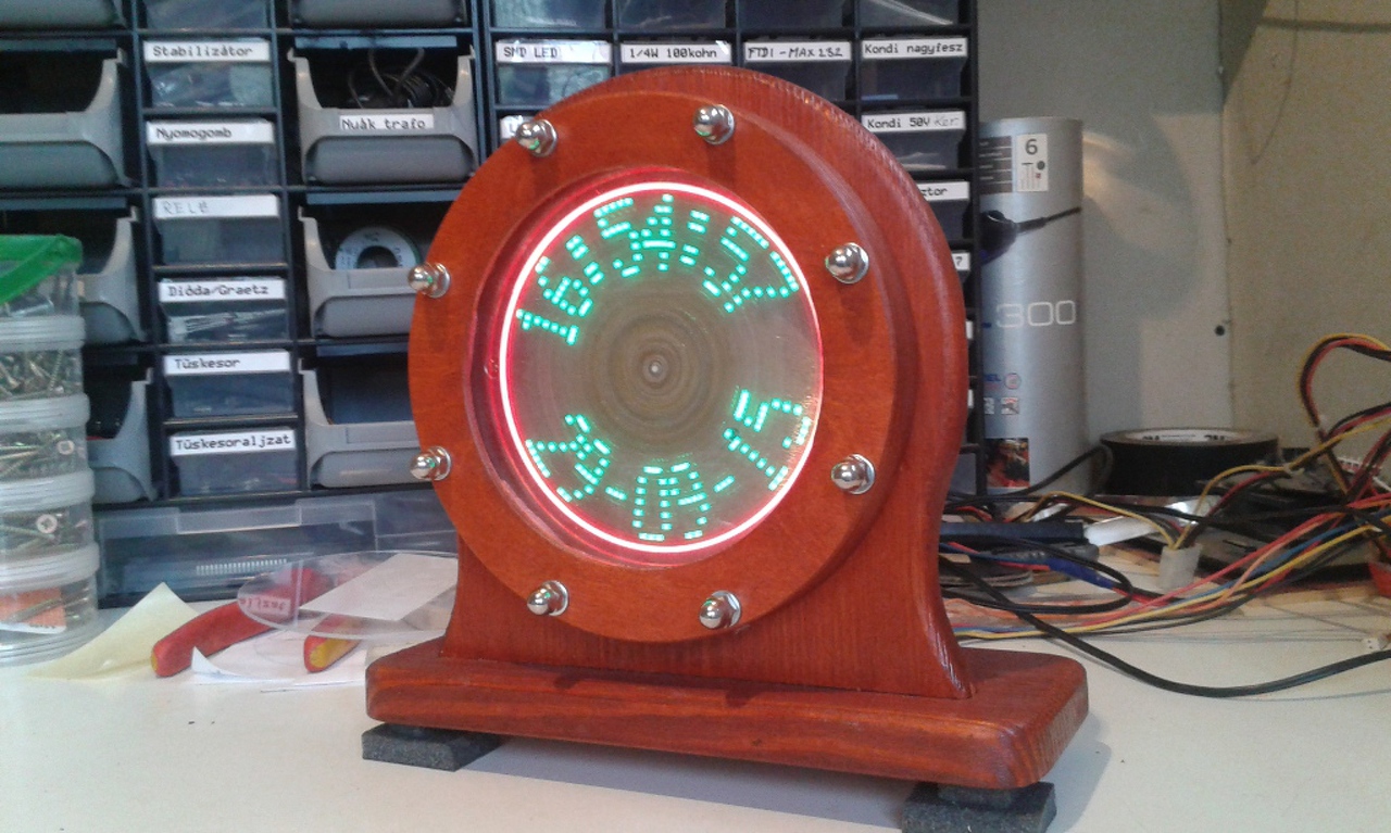 Úgy látom , műhely munkára mentek a nagy fiúk. Most cincoghatnak az egerek. Kedv csinálónak dicsekszem egy kicsit. Most a második megépített órámról néhány képpel. Ezt kisebbik leány gyermekem nyerte el. A ruháját saját kezűleg faragtam és propeller megjelenésre "hajaztam". Ebben még nincs RTC-sem, a cikk alapján készült, saját tervezésű egyoldalas nyákra.