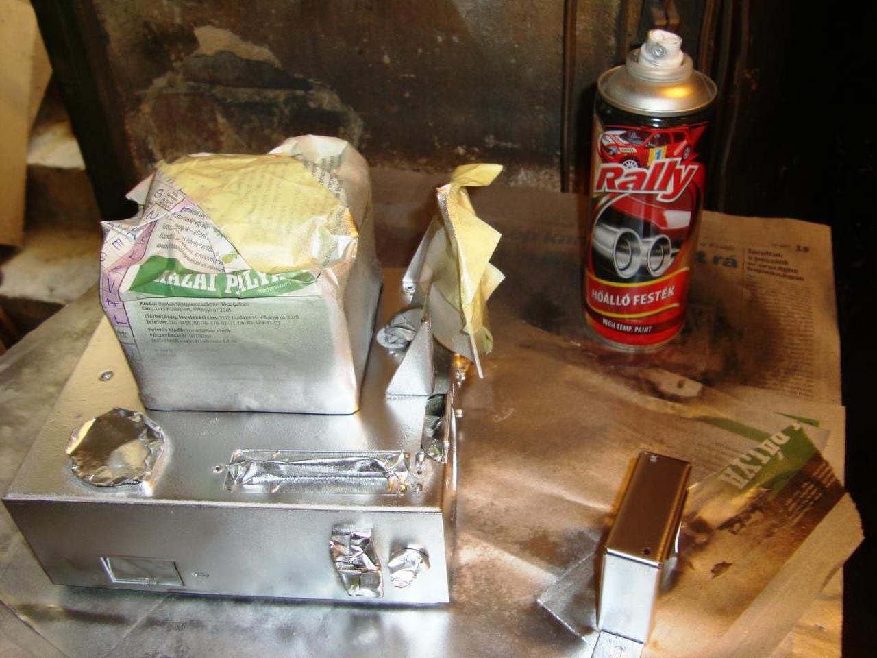 Foytatom a tápegységet: csak a fojtó tafót szedtem le róla, aztán először kitakartam mindent, és csak a hál. trafót fújtam le feketére, majd száradás után a többi részt maszkoltam ki, és lefújtam ezüsttel. Műszakilag jó volt, csak a két elkót kellett cserélni benne. Érdekesség, hogy 4 elkó adja a szűrést, amiből kettő eredeti 30-as évekből való Siemens, annak semmi baja, a másik kettő viszont később berakott, cserélt Tesla volt, azok persze halottak. Most ez is késznek mondható, holnap megpróbálom összekötni és megszólaltatni a gépet.