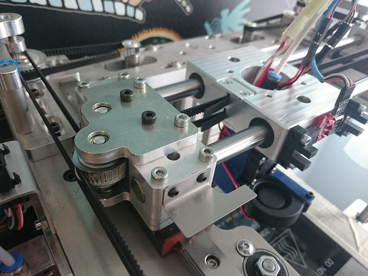 Sajnos még nagyon félkész állapotban van időhiány miatt. Ezzel a tempóval még beletelik pár hónapba, hogy befejezzem. Pár képet azért tudok mutatni. Főleg fémből terveztem mindent, egyedül a hűtés lett nyomtatva. A mozgó kocsik is mind enyhén előfeszített csapágyakon futnak, egy multifunkciós gépnek indult a tervezés. Ezért van az asztal is masszívabbra építve mint egy szokásos