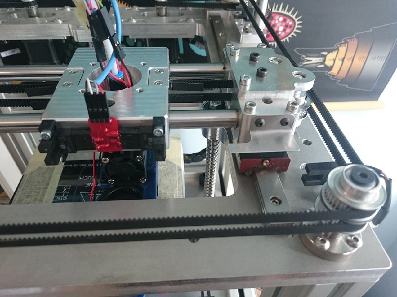Sajnos még nagyon félkész állapotban van időhiány miatt. Ezzel a tempóval még beletelik pár hónapba, hogy befejezzem. Pár képet azért tudok mutatni. Főleg fémből terveztem mindent, egyedül a hűtés lett nyomtatva. A mozgó kocsik is mind enyhén előfeszített csapágyakon futnak, egy multifunkciós gépnek indult a tervezés. Ezért van az asztal is masszívabbra építve mint egy szokásos