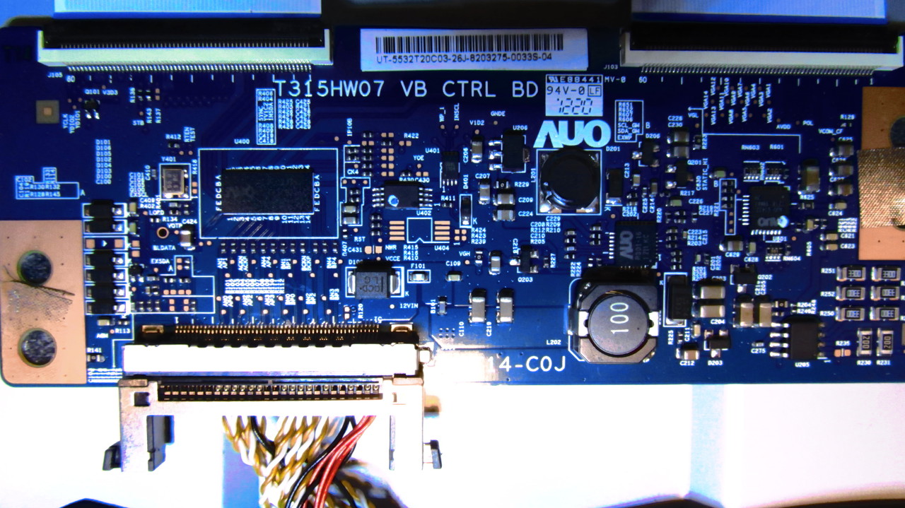 Jaaj a jóöreg AUO, ezekre jellemző a T-con hibája. Ott vannak jobb oldalon látni is a feliatokat a csatlakozó előtt, de nem valószínű, hogy sokra mész vele, ha neked volnék próbálnék szerezni egy ilyen panelt (eBay stb.).