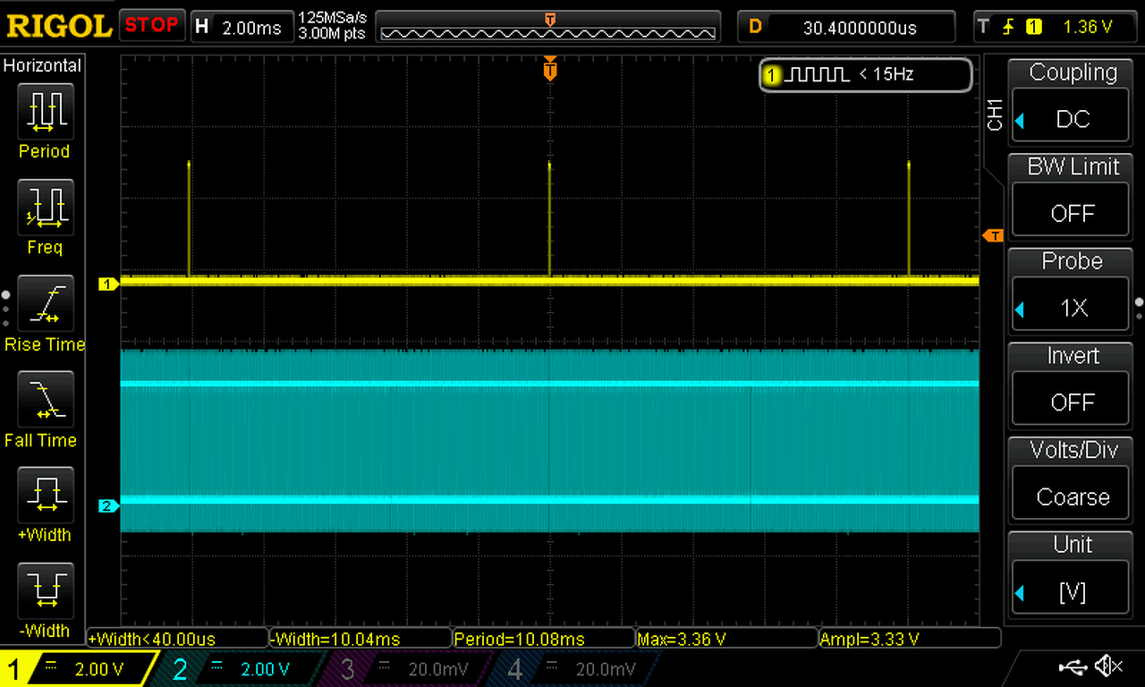 Amikor a periódus végez megszakításban billegteti az egyik kimenetet de mint látható elég durva hibával.