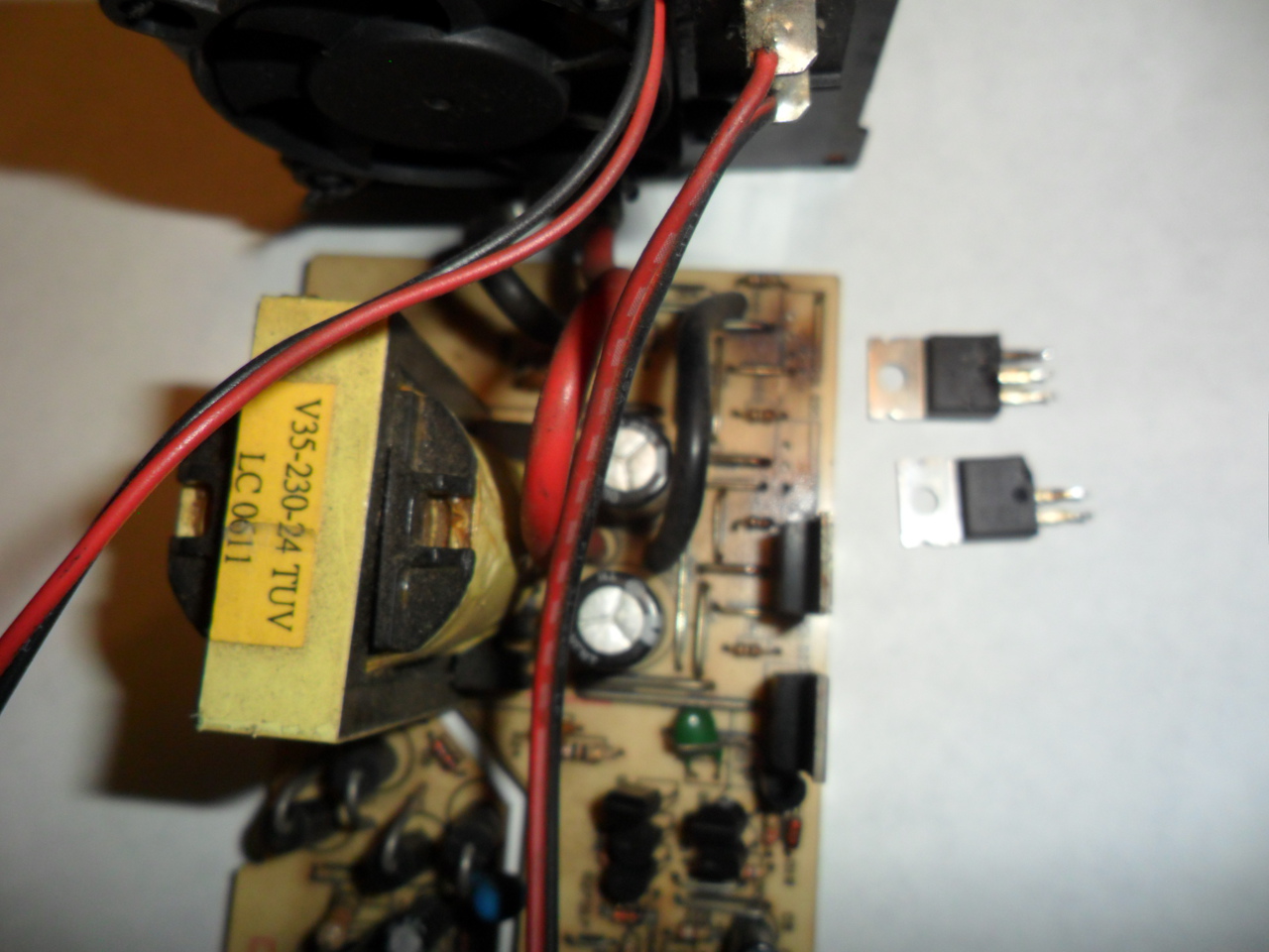8 db FET van benne. A trimmerrel lehet állítani a feszültséget. Jobban jársz, ha ráveszed magad a szerelésre, mert amíg csak a biztosítékokat vagdalja, addig könnyebben és olcsóbban javítható. Nem ajánlom, hogy feljebb tekerd a feszt, mert biztos a durranás.