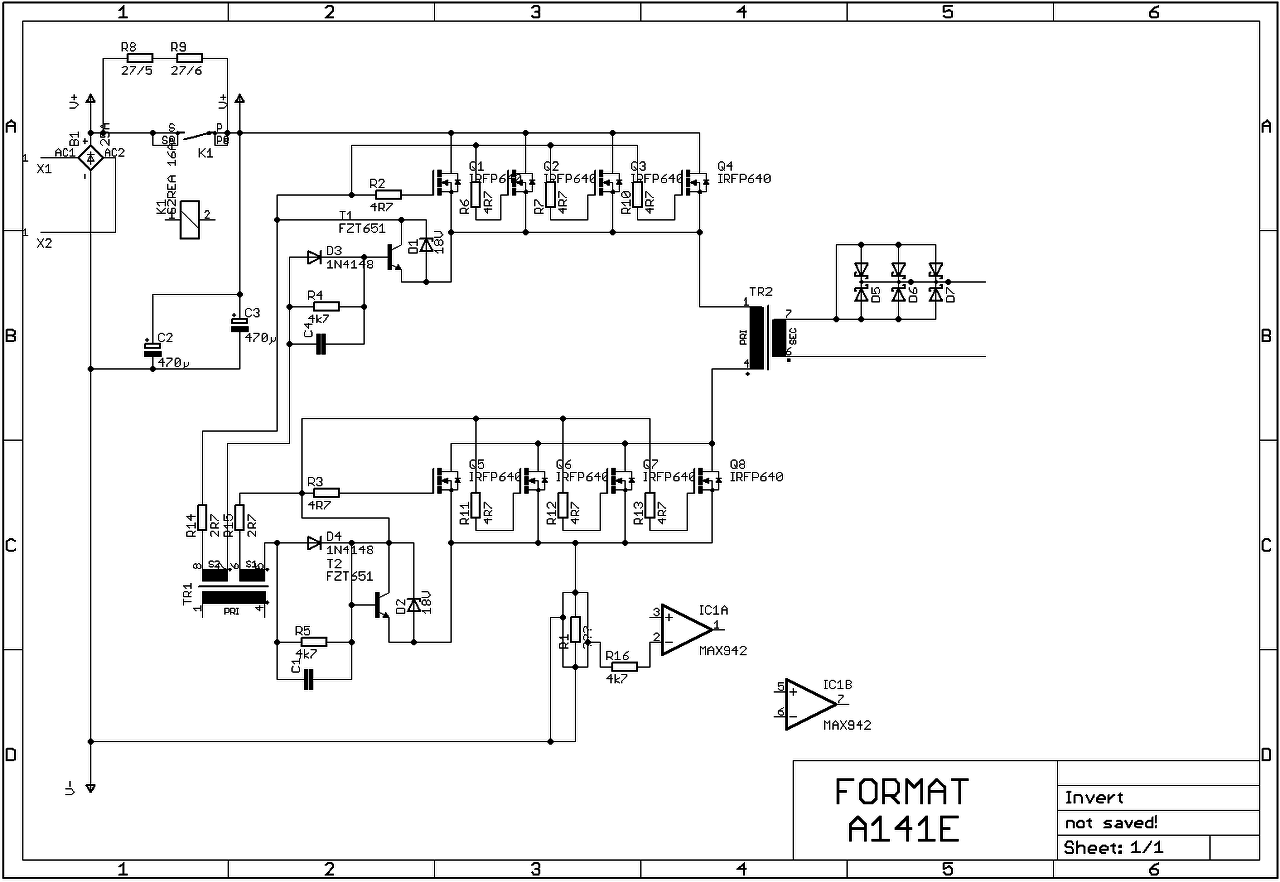Ebben a gépben minden furcsa.MAX942 a komparátor ami 3.6 volton üzemel . A kimeneten nincs fojtótekercs de még gyűrűt sem húztak a kábelra. Az egyenirányítás pedig csak egy oldalú. A vezérlő IC PIC 16 F 818.