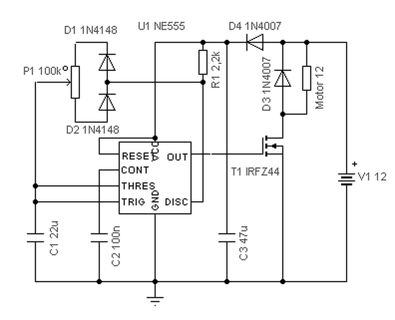 Hello! Ha ragaszkodsz hozzá, próbáld ki. De szekundumokra nem kel 4066. Egyszerű lassú PWM generátort is használhatsz. Akkor a periódusidő (két mozgás közötti) állandó és az arányt (jár/áll) változtathatod a potiva kedvedre. Ha a periódusidő nem jó, azt a C1-el változtathatod. (Mondjuk nem írtad a moci feszültségét, áramfelvételét.)