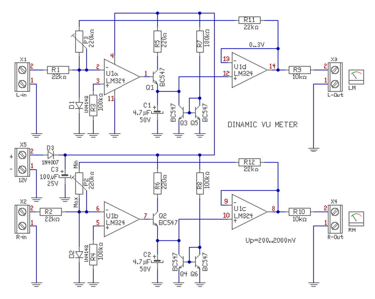 Kérdés: Meg tudnám kapni tőled ennek a verziónak a kapcs. ill. nyák rajzát? Akár pdf, akár sprint layout-ban? Továbbá az ellenállások értékét számolva 12 V tápfeszültség, és 250mV-5V bementi jelszintre pioneer Ct-506- os deprez műszerhez? ( home.lorincz@gmail.com )
