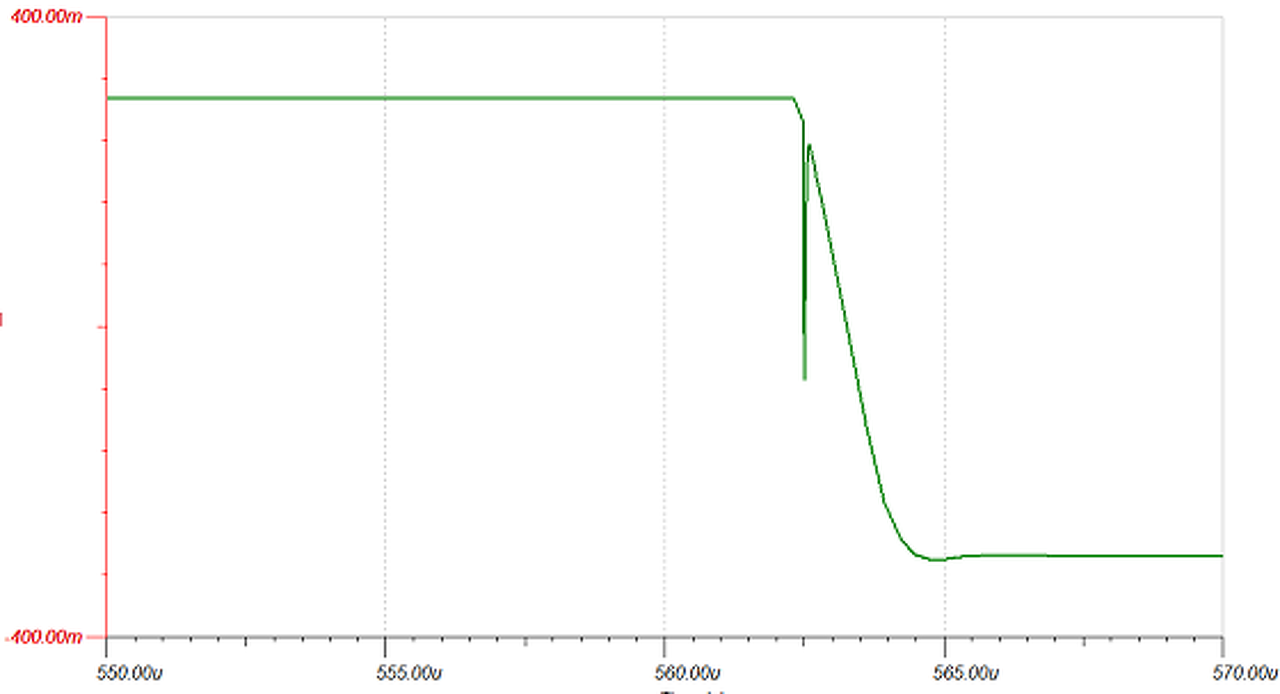 Egészen pontosan ezt látni diff erősítő invertáló bemenetén. Ahogy nézem a zinternetet ez nem egyedi eset és talán nem is akkora probléma, lehet, hogy a másik kapcsolás igazi kuriózum, mert nagyon stabil.
