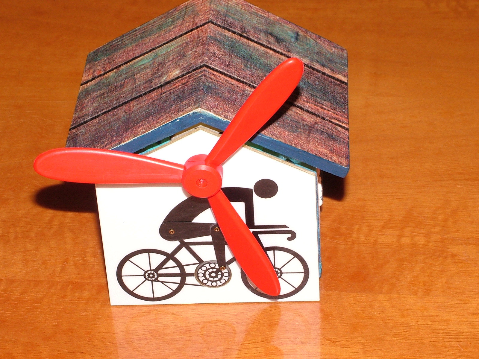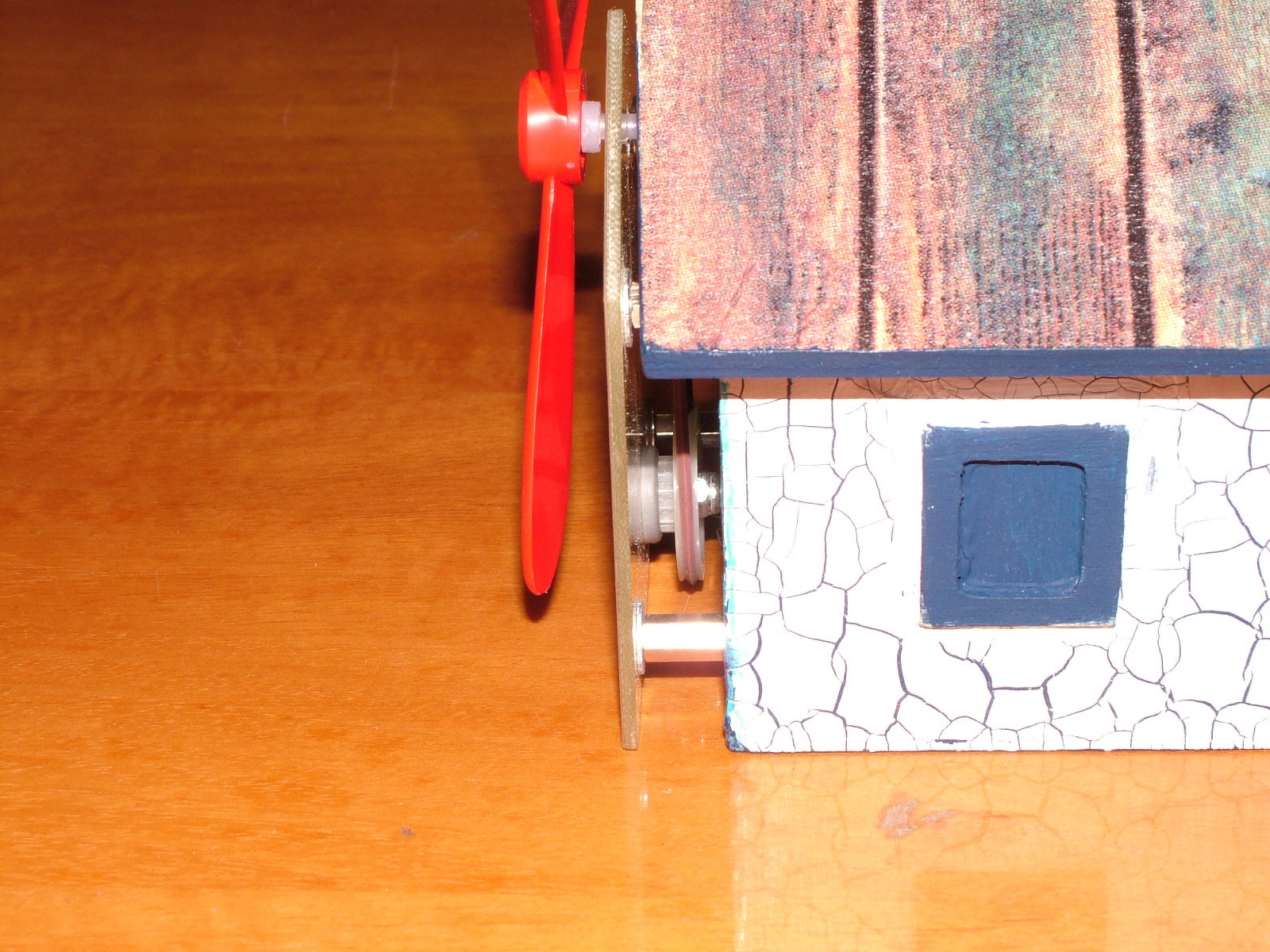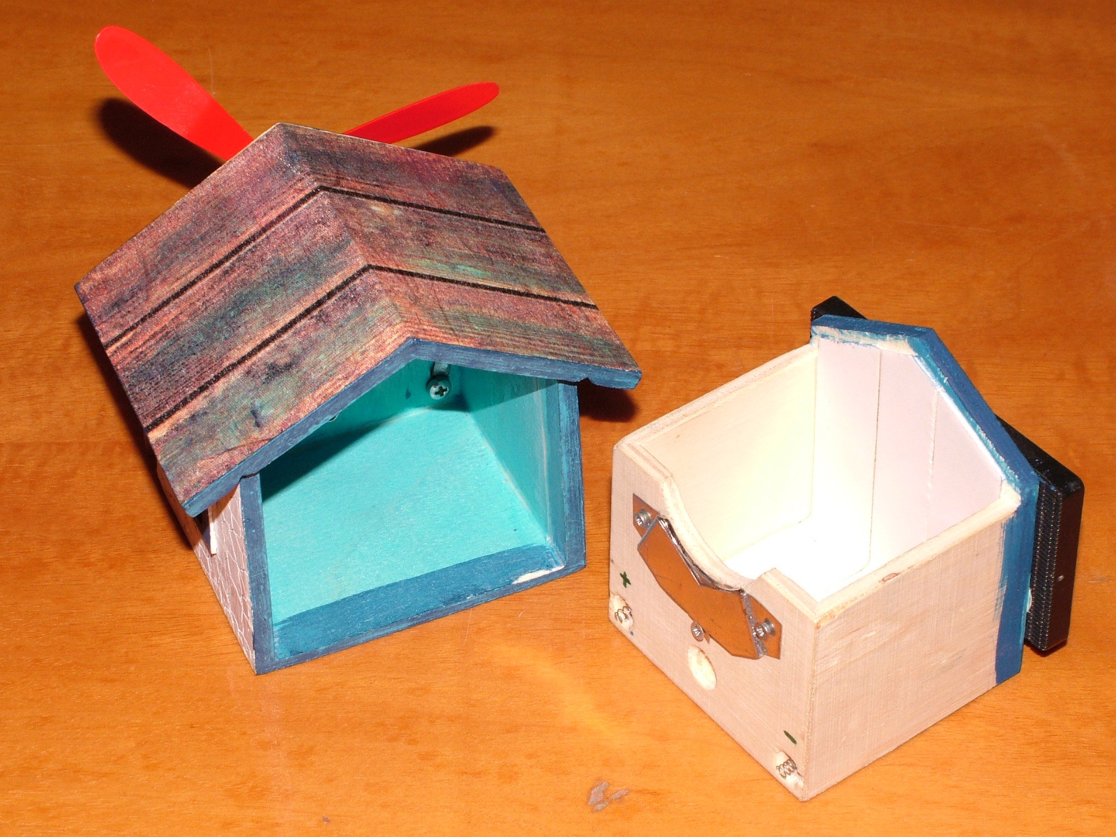 A házikót megvettem, és lefestettem. A megfelelő helyen a napfényre elindul. Tetszett nekik. Működés közben