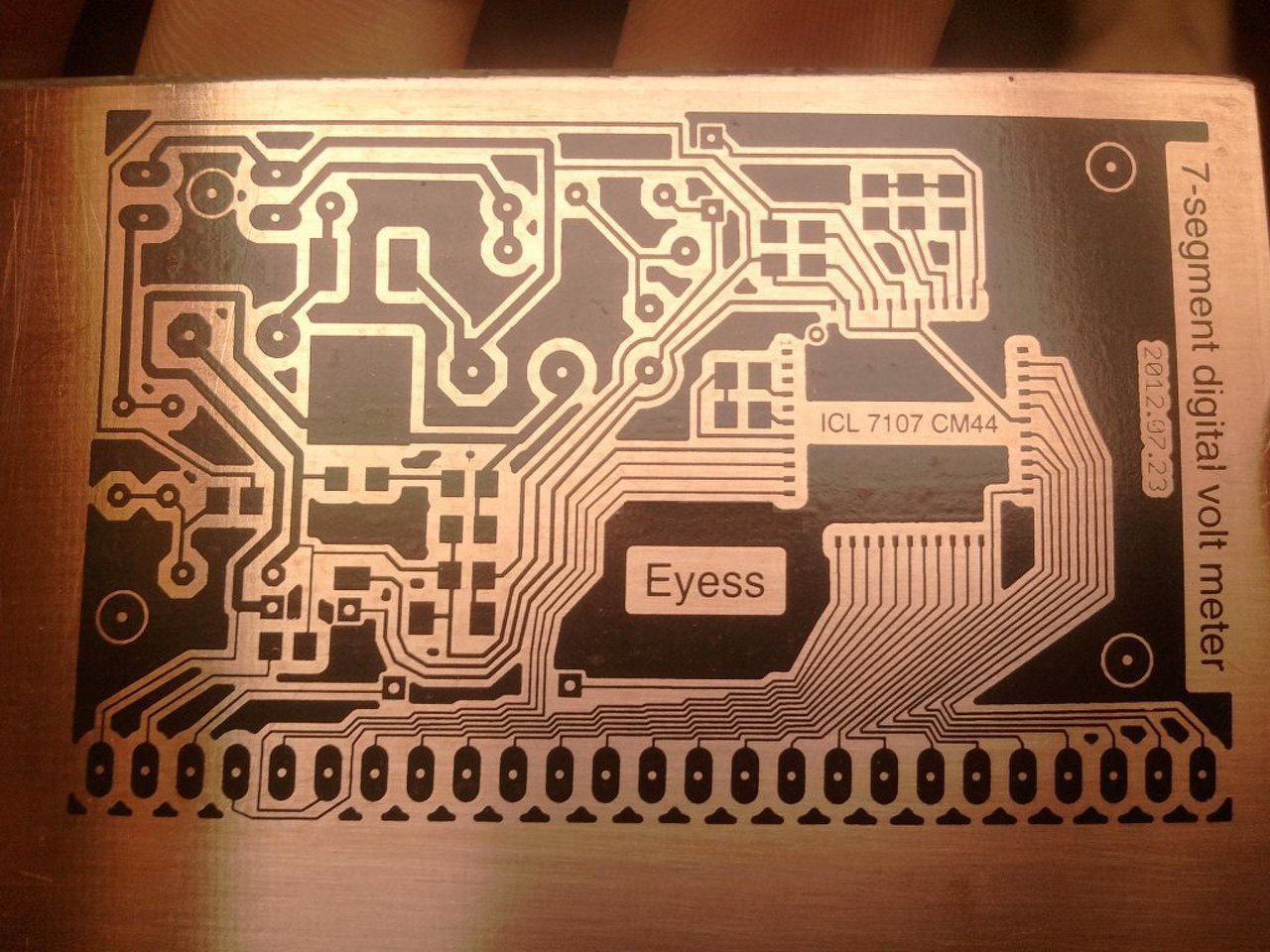Gagyi 65Ft-os fotópapír, és viszonylag rossz minőségű lézernyomtató kombinációja eredményezte ezt. A lamináló nagyon jó minőségű, a maratáshoz tn150-et az ónozáshoz tn160-at használtam. Úgy látom, hogy a vékony, nem rendesen fedő festékréteg miatt a maratófolyadék megtámadta a festékkel fedett részeket is aztán az ónozó meg csak még csúnyábbá tette az egészet. Ettől függetlenül az áramkör működik. A jobb felső részen látható teszt is jól sikerült, a különböző forrszemek között kacskaringózó vezeték 8mil-es. Szerintem a túl gyenge alapanyag a hibás, de bármiféle észrevételt szivesen fogadok. A hozzászólás módosítva: Aug 2, 2016