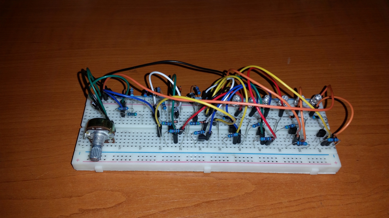 Nekem módosítanom kellett az első részt, mert nagyon kicsit erősített, talán az első pár LED villogott. Módosítás után jó lett.