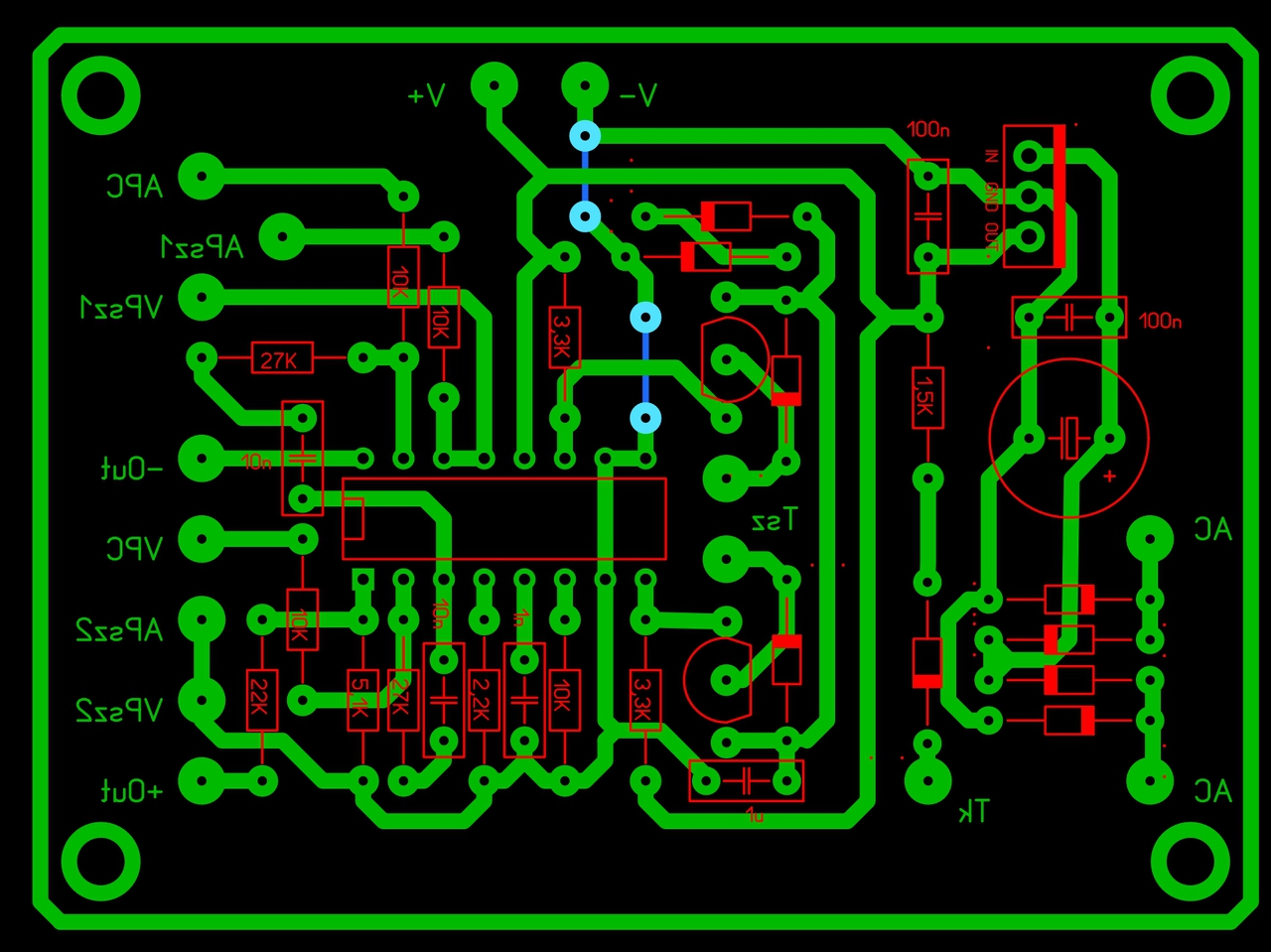 Az alábbi kapcsolás azért készült, mert viszonylag sok időbe tellett nekem a különböző AT-s tápok visszafejtése, a labortápnak való átalakításhoz. Ennél csak a meghajtó trafó három lábát kell megkeresni, leválasztani az eredeti kapcsolásról, és persze a szekunder oldalt a szokásos módon átalakítani. Saját 12v-ot készít AC-ből, ha esetleg még segédtáp sem lenne eredetileg, erről megy a ventilátor is (a képen a bekötetlen lukak).